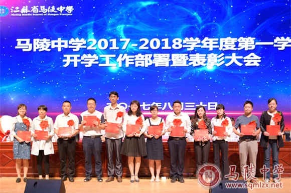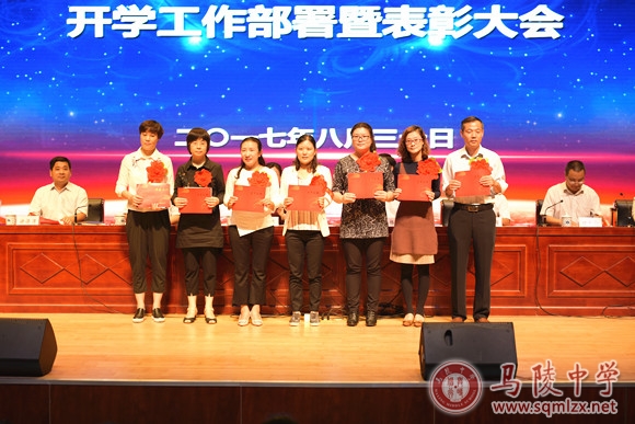 大会宣读了《关于表彰2016-2017学年度优秀班主任的决定》、《关于表彰2016-2017学年度优秀备课组的决定》、《关于表彰2016-2017学年度招生工作先进个人的决定》、《关于表彰“首届教师微课大赛”特等奖获得者的决定》,并由校领导为荣誉获得者颁奖。