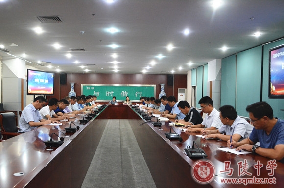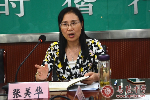 王丽梅传达全省普通高中教学研讨会精神,解读会议传播出的高中课改消息:江苏教育改革发展的主题是“创造适合的教育”,由选择“适合教育的学生”转到选择“适合学生的教育”。普通高中要注重开展因材施教、言行一致的教育,要规范办学,加强教师队伍建设;要坚持以课程改革为中心,抓住新一轮高考改革的机会,提升学校的品质;要强化核心素养的培养,强化课程的选择性,强化学生过程性的考核;要以高品质示范高中建设为引领,提升学校的品质等。