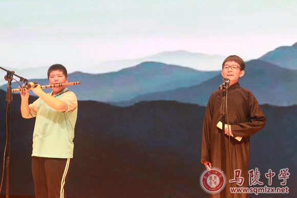 参赛选手在后台紧张而又认真地准备自己的朗读作品,台下的同学安静地端坐在各自班级的位置上,等待着这场朗读盛宴。“各位评委老师好,我是一号朗读者……”比赛在高一(6)班蔡万莉同学的自我介绍中拉开了帷幕。“我用残损的手掌,摸索这广大的土地:这一角已变成灰烬,那一角只是血和泥……”她深情地朗诵这首《我用残损的手掌》,一字一句地轻轻呢喃,让每一个人为之动容。池恒、舒锦瑞同学朗读的《相信未来》,充满激情与自信;陆香凝同学一首《寻梦者》,带领青年朋友们向梦想出发;张励文同学朗读的《祖国啊,我亲爱的祖国》,诉说着对祖国深沉而强烈的爱;张音、徐雪可同学朗读的《回答》,展现了他们面对困难时的坚定与勇敢;胡慧同学朗读的《中国,我的钥匙丢了!》,让人沉思与感动;杨邦梓豪朗读的《热爱生命》,让人感悟生命的真谛;高一(1)刘雨、张翔宇同学朗读的《致橡树》,与高一(11)班的吕柯、王紫婷、张歆玥、周赢带来的《致橡树》,共同展现了他们对青春美好的向往;高一(7)班陈玘凡朗读的《沁园春·长沙》青春激昂,而他的搭档陆波睿用一首《幽兰逢春》为其伴奏,使人仿佛在此诗中。在朗读中,同学们吐字清晰,字正腔圆的精彩演绎,赢得了阵阵掌声,更是把比赛推向一个又一个高潮。