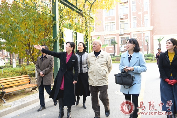 梅木信秋一行察看了我校校园文化环境。王丽梅介绍了我校的发展历史、办学情况等。