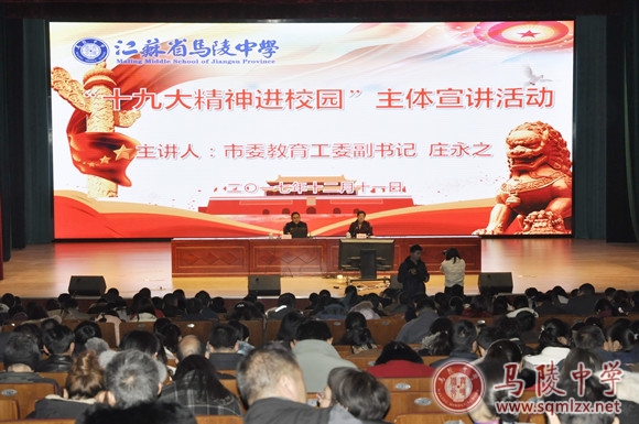 12月11日下午,我校在艺术楼报告厅隆重召开“十九大精神进校园”宣讲报告会,市委教育工委副书记庄永之出席会议并为全体教师做了题为《为建设教育强国作出新的贡献》的主题报告。