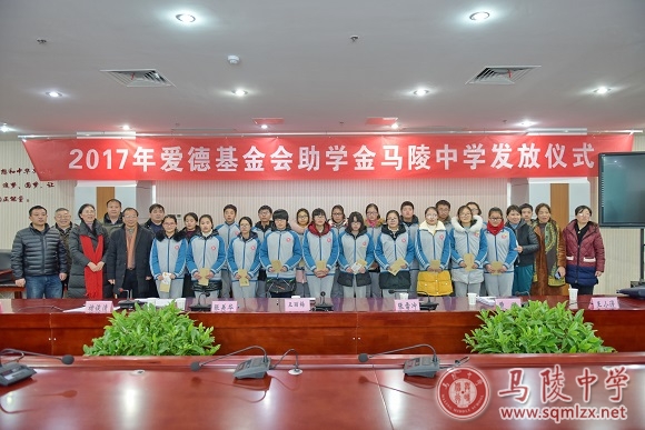 仪式上,省爱德基金会专员曹琳老师向同学们介绍了爱德基金会的成立历史,性质和慈善资金的来源,并勉励受助同学们接受捐助既不要有太大压力,又要努力学有所成。宿迁市民建主委市政协副秘书长张雷冲发表了热情洋溢的讲话,给受助学生提出了殷切希望。校长王丽梅、校党委书记张美华分别代表学校和校党委对在大雪纷飞严寒的天气来我校捐资助学的省市民建领导和爱德基金会的领导表示感谢,并对与会的每一位受助学生提出了要求,要求他们今后要努力学习,积极进取、要以自信、大气、阳光的心态顺利完成高中学业,要始终怀着一颗感恩之心走好今后幸福人生的每一步。褚俊清副校长对爱德基金会的善举表示感谢,表示将更好地做好学生的服务工作,力求让贫困学生的学习、生活得到最大限度的保障。