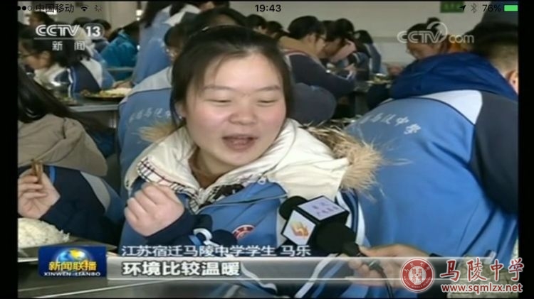 12月12日,央视《新闻联播》播发市政府推进的暖心工程,报道以《江苏:“暖心工程”让学生暖心暖身》为题,以我校为报道点,为我市“暖心工程”点赞!