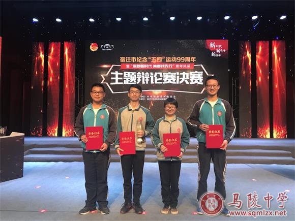 恭喜我校“君和”代表队在宿迁市纪念五四运动99周年暨“筑梦新时代,青春我先行”青年风采主题辩论赛中荣获季军。