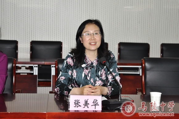 王丽梅对炮车中学领导一行来访表示欢迎。她从学校的历史、校园文化、知名校友、办学成绩、四星创建历程等方面进行了介绍。