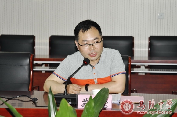 党政办主任苏俊宝介绍了我校创建四星级高中材料整理以及专家进场的一些经验和做法。