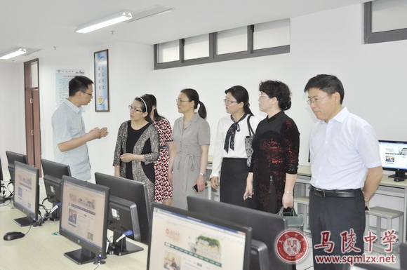 各位调研人员在王丽梅的陪同下,首先查看了教学区的实验楼、办公室、教室、高考智慧系统广播室,并来到养正楼查看网络中心、监控中心,信息化管理中心主任谯肇东,详细介绍了我校中心机房配、监控系统等现状,各位调研人员边听边讨论。随后各位调研人员来到养正楼六楼计算机教室查看了校内网页设置及学生电脑配置情况,并在录播教室观看了我校青年教师“五四杯”课堂教学大赛现场。最后,各位调研人员来到我校图书馆,查看我校图书馆资源配置,电子图书系统、借阅系统等情况。