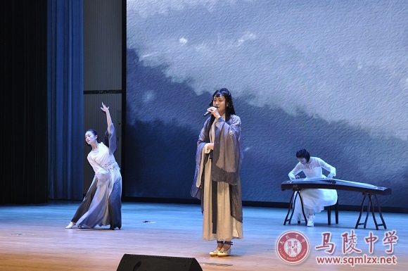 随后,由高一(17)班带来《琵琶行》表演,学生们将传统诗词与现代音乐相结合,歌、舞、琴、书四艺同台,精彩绝伦;观众们耳目共染,掌声雷动。