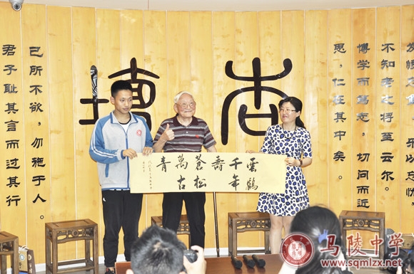 张守礼先生再次向母校赠送了自己珍藏的书籍、题字、信件等珍贵物品。我校学子现场书写了“云鹤千年寿 苍松万古青”祝福语赠送给张守礼先生。交流活动温馨美好,现场不时传来阵阵掌声。