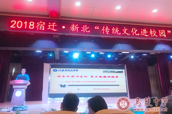 下午3:00,在宿豫区张家港实验小学举行的专题研讨会上,我校作为市直学校唯一一家代表进行经验交流。副校长汪德强代表我校作了《衍圣弘道兴杏坛 养正毓德润桃李》的发言,得到与会人员的一致肯定。