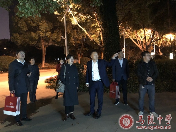 11月1日晚上,王丽梅又连夜带队前往江苏省天一中学考察学习。在夜色中,天一中学校长朱卓君亲自带领王丽梅一行考察天一中学校容校貌,介绍天一中学的校园布局和未来规划。