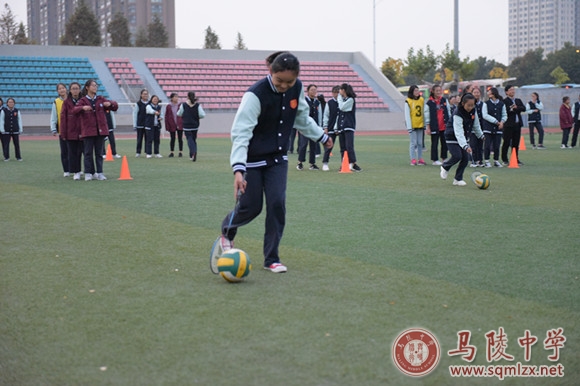 高三足球绕障碍物混合接力比赛
