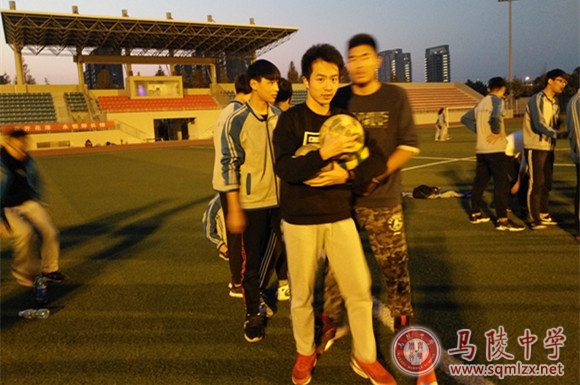 高二男子抱球跑