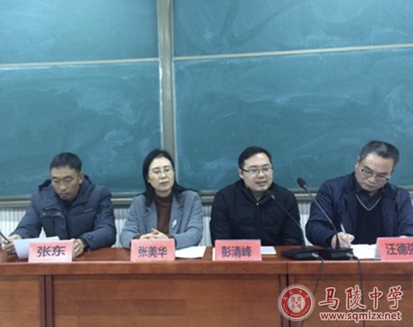 1220下午,我校课程中心在阶梯教室2组织召开2018年奥赛工作总结暨优生培养推进会,总结2018年经验,部署2019年工作。校党委书记张美华和宿迁中学彭清峰、张东两位金牌教练与会指导。会议由副校长汪德强主持。
