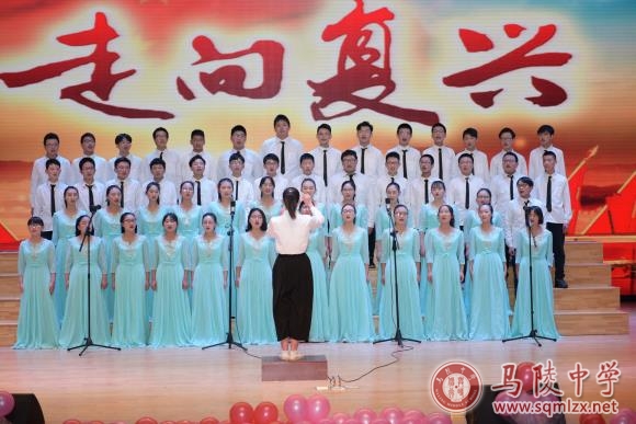 “走向复兴,创造辉煌”,带着大家对国家兴盛富强的热切期望,对建设美好未来的坚定信念,由高一年级(7)班全体同学演唱的《走向复兴》拉开了“庆元旦,迎新年”教职工联欢晚会的帷幕。