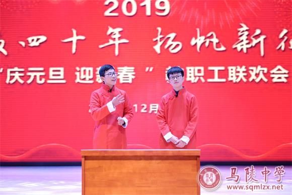 12月29日晚,我校在报告厅隆重举行2019年“庆元旦,迎新春”教职工联欢晚会。校长王丽梅、校党委书记张美华与全体教师共同观看了演出。