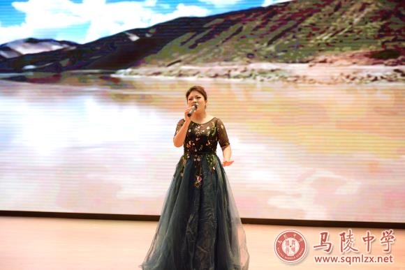 高二年级英语老师合唱《风中有朵雨做的云》,悦耳动听,优美的歌声在报告厅回响。