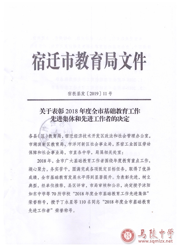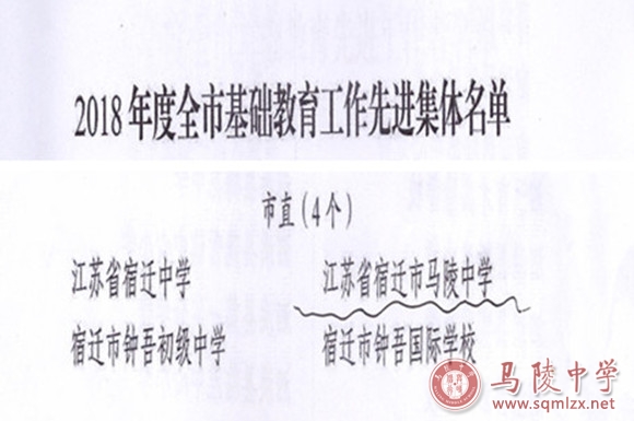 2018年,我校紧紧围绕年度教育重点工作,凝心聚力,务实苦干,圆满完成各项既定目标任务,取得了优异成绩,被评为2018年度全市基础教育工作先进集体。