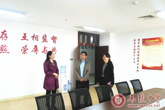 4月25日上午,宿迁中学洋河分校校长李辉一行4人来我校交流党建工作。校长王丽梅、校党委书记张美华陪同交流。