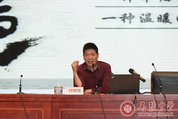 在开幕式上,学校有幸邀请了常州大学的丁宪成教授和及南京师范大学文学院博士、常州大学周有光语言文化学院中文系主任付用现教授。傅教授为在场师生精心准备了一场文化盛宴——“腹有诗书气自华——谈读书与成长”专题讲座。傅教授站在文化、文明的高度来谈读书对成长的重要意义。人为什么要读书?因为读书是一种诗意的生存状态、一种幸福的生活方式、一种温暖的生命体验,是提升个人修为、个人境界、个人情怀之必需。读书要读兴趣之书、经典之书、实用之书、庞杂之书。掌握读书方法,精读、泛读、速度,心到、眼到、口到、手到。