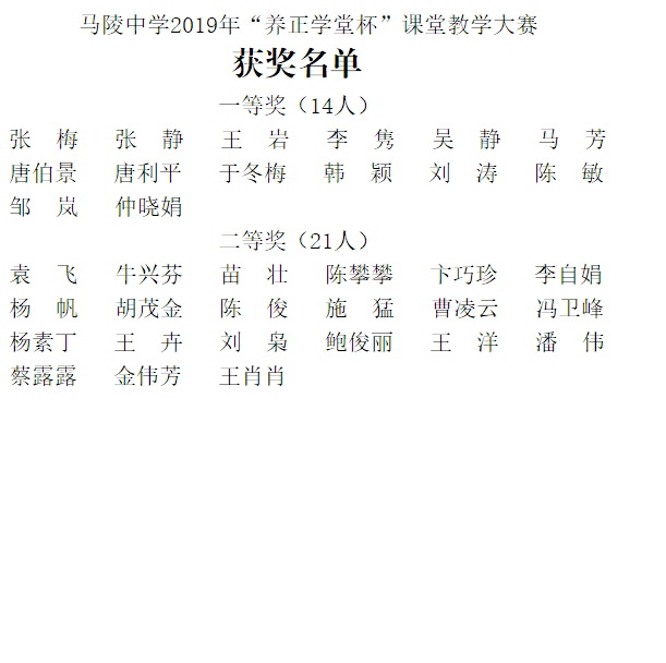 18888552019年“养正学堂杯”课堂教学大赛获奖名单