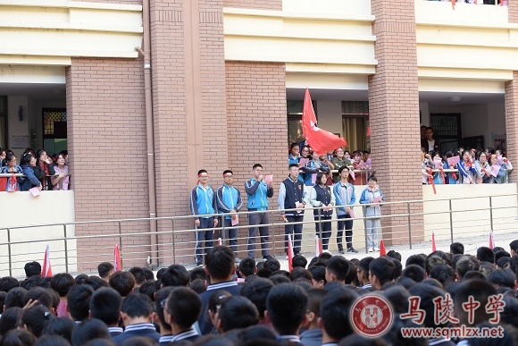 随着高考日益临近,为了对即将参加高考的高三同学给予鼓励,我校团委精心策划组织了本次活动。下午第七节课各年级组织同学们有序进场,同学们拉起条幅,举起国旗,舞动班旗,气氛热烈。高三的同学们戴好“决战高考· 为梦想而战· 必胜”的红色头带,从教学楼上热切地观望学弟学妹。