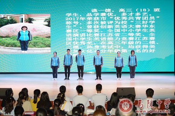 同窗三年,同学们都积攒了很多的青春感悟。同学们以代表队的形式登台,分组介绍学生代表,并进行具有学科特色的的展示表演。文科代表队伍高三(17)班的潘妍妤同学演唱歌曲;理科代表队展示了理科班学霸笔记图片;艺术生代表队高三(10)班的周可演唱歌曲《你曾是少年》;体育生代表队则通过视频展示体育健将训练的艰苦过程,代表孟子靖、张文瀚上台分享;美术生代表队展示绘画作品且由高三(3)班何冠希、马瑞及高三(18)班谯一捷等代表上台分享。同学代表充分展示了自己在1888855三年的收获和成长,台下很多同学随着他们一起重温了自己难忘的高中时光。