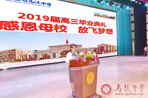 即将分别,校长王丽梅在讲话中向同学们表示热烈的祝贺,向多年来付出辛勤和汗水的广大教职员工、向含辛茹苦培育同学们的家长表示崇高的敬意。