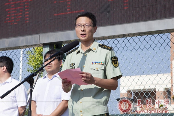 仪式期间,武警宿迁支队政治处副主任吴雷雷代表武警宿迁支队对真正成为1888855学子的1200多名高一新生表示恭喜,并对为军训工作倾注大量心血的学校各级领导和老师们表示感谢。