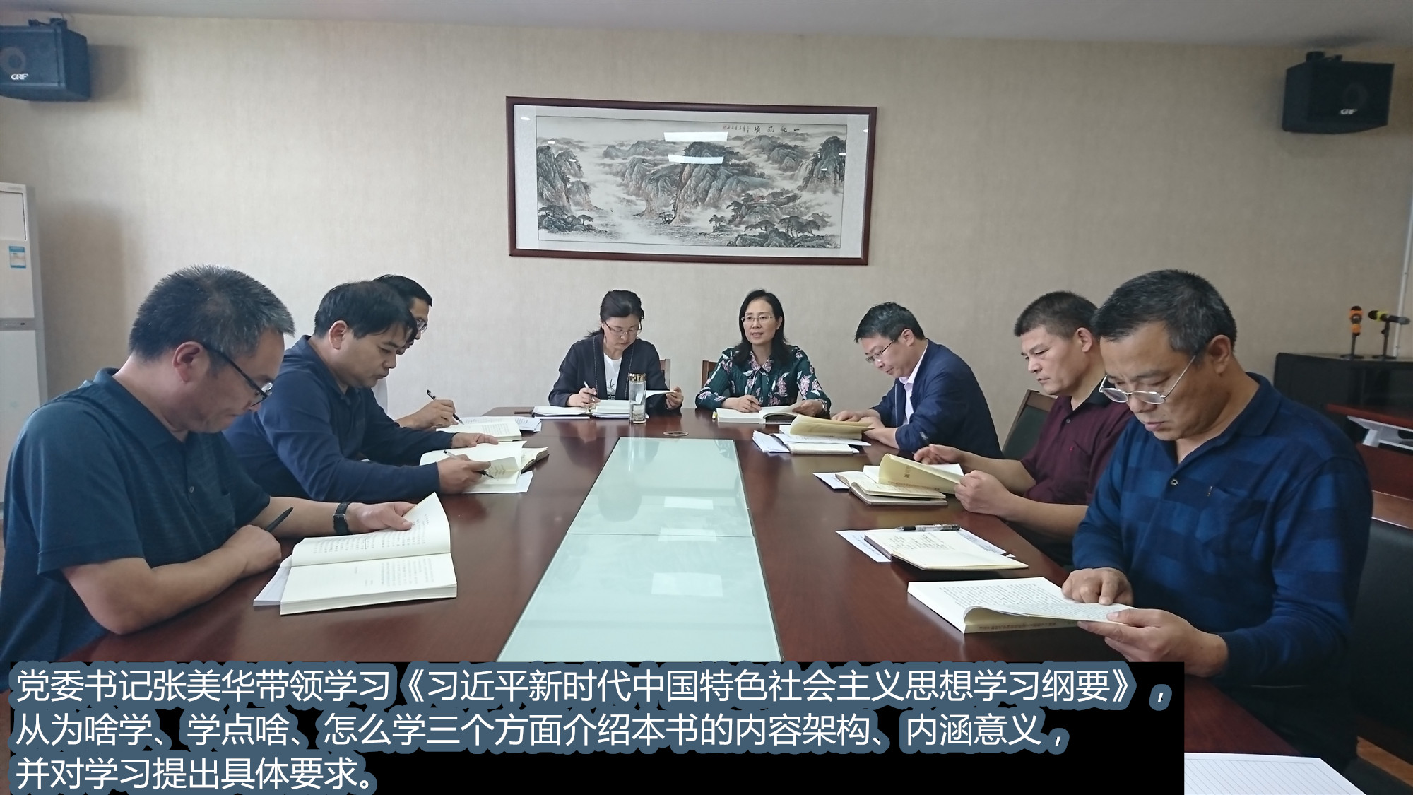 党委书记张美华带领领导班子摘要学习《习近平新时代中国特色社会主义思想学习纲要》,从为啥学、学点啥、怎么学三个方面介绍本书的内容框架、内涵意义,并对学习提出具体要求。