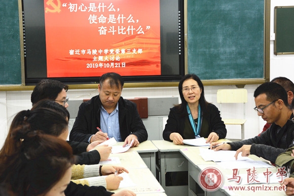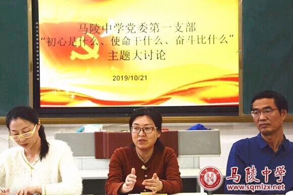 发言中,广大党员结合“四重四亮”活动、“宿迁三个怎么办”大讨论大检视大落实活动,认真对标党的根本宗旨,联系党的革命传统和光辉历史等,回顾“初心是什么”。立足办好人民满意的教育,联系学校改革发展,结合实际工作,思考“使命干什么”。深入思考,对表对标,紧密联系思想工作实际,唱响爱国奋斗主旋律,提振干事创业精气神,畅谈“奋斗比什么”。