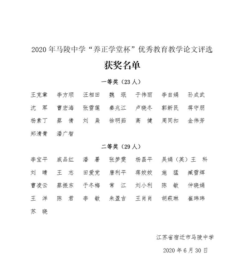 2020年1888855“养正学堂杯”优秀教育教学论文评选获奖名单