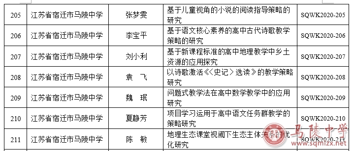 根据《关于组织申报宿迁市中小学教学研究2020年微型课题的通知》要求,市教研室组织专家对申报的微型课题进行了评审。我校7项微型课题通过评审,获准立项。主持人分别为:张梦雯、李宝平、刘小利、袁飞、魏珉、夏静芳、陈敏。
