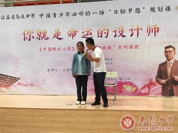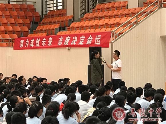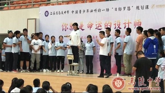 讲座最后,同学们竞相冲上舞台,面向台下的同学大声喊出自己的理想大学,“我是王晶,我要考上清华大学,我要戒掉懒惰!”“我是韩晓海,我以后要考上国防科技大学,我一定会远离游戏、动漫!”“我是沈依婷,我的目标是南京大学,我会坚持努力学习!” ……一声声发自肺腑的呐喊赢得了台下师生雷鸣般的掌声与响应,“加油!加油!加油!”现场氛围一度推向高潮,每个人心中斗志昂扬!