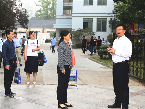 首先,参观校园。在清江中学党委书记、校长陈欣,副校长乔中云及部分清中领导的陪同下,考察组一行参观了清江中学的校园景点、书吧、图书馆、千人报告厅等处。
