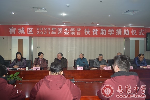 12月23日,宿城区扶贫协会会长王昌华、副会长李文斌等携手宿城区七家爱心企业负责人再次来到我校,举行扶贫助学捐助仪式。校长王丽梅、党委书记张美华、副校长褚俊清出席仪式,关工委刘秉晨老师、受助学生参加仪式。