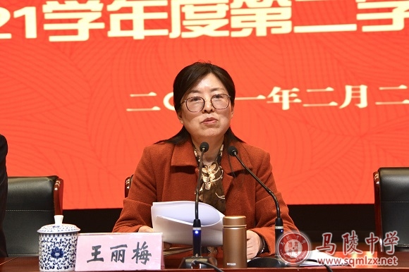 王丽梅指出,新学期,全校上下要紧紧围绕市委教育工委、市教育局的工作部署,秉持“集体领导、依法治校、民主管理、科学决策”的管理方针,以省四星级普通高中复审为契机,围绕八个方面开展好工作:聚力立德树人,培养全面发展时代新人;聚焦质量建设,深入推进内涵全面提升;加强队伍建设,筑实人才成长坚强支撑;构建特色课程,精心涵育学生综合素养;强化常规管理,建设和谐美好现代校园;迎接四星复审,全面提升教育教学水平;喜迎二百年校庆,细致做好庆祝筹备工作;深化党建工作,构筑发展核心坚强保障。