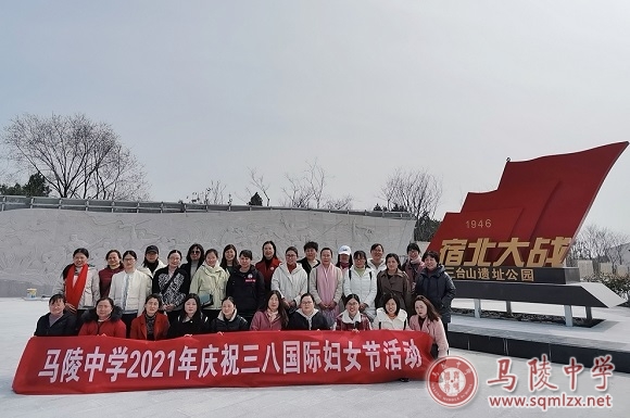 当日中午十二半,党委书记张美华、工会主席袁金花、妇联主席赵宗莲带领全体女教职工乘车前往宿迁市三台山公园。