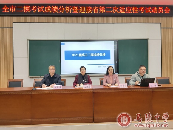 3月31日下午,高三年级在西校区阶梯教室召开了二模成绩分析暨迎接省第二次适应性考试动员会。校长王丽梅、校党委书记张美华、高三年级管理团队及高三全体教师出席了会议,会议由副校长汪德强主持。