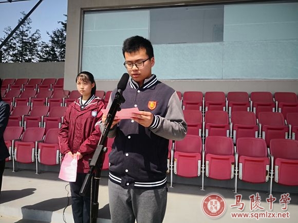 第三项议程:高二(18)班单子严同学进行读书节倡议发言。