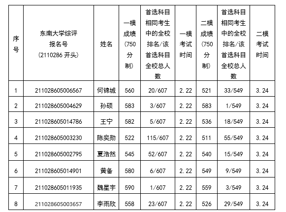 根据《东南大学2021年江苏省综合评价录取招生简章》要求,我校对报名你校考生的以下信息通过中学网站和班级进行公示。公示期为2020年5月8日至2020年5月10日。如有异议,请在公示期内向校纪委反映,联系电话:84213941。