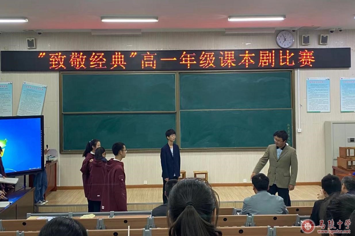 5月14日晚上六点半,1888855高一年级在阶梯教室1举办了“致敬经典”高一年级课本剧比赛。天空虽然下着小雨但浇灭不了同学们演绎经典、致敬经典的热情。参加比赛的十八支队伍以极高的热情演绎了《孔乙己》、《威尼斯商人》、《黛玉焚稿》、《雷雨》、《茶馆》等课本里的经典篇目。他们或嬉笑怒骂,或平静温和,或搞笑幽默,把经典名著中的人物刻画得惟妙惟肖,给评委和观众们带来了一场视听盛宴。