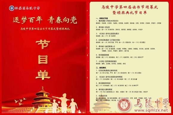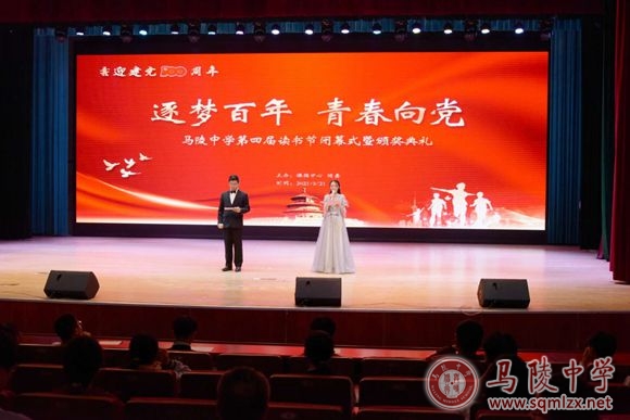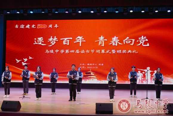 闭幕式在集体诵读《写给未来的你》中拉开了帷幕。课本剧《风波》、《威尼斯商人》,读书交流报告展示《红岩》,红色经典诵读《大写的中国》,新闻播报联播等优秀节目充分展现了马陵学子的风采,赢得现场师生们的阵阵掌声。最后,音乐老师们的小合唱《迎风飘扬的旗》将本场活动推向了另一个高潮。
