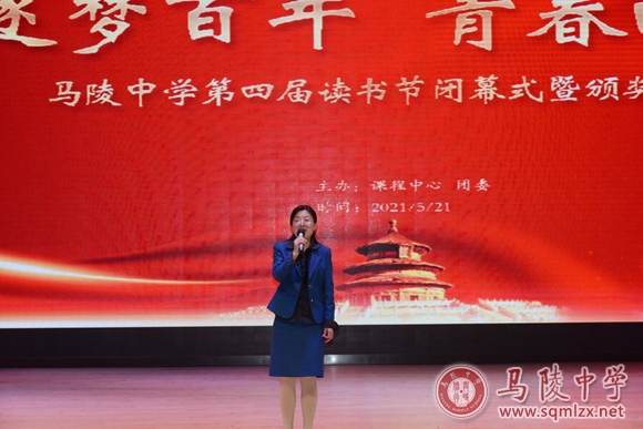 王丽梅校长宣布“逐梦百年,青春向党”第四届校园读书节胜利闭幕。