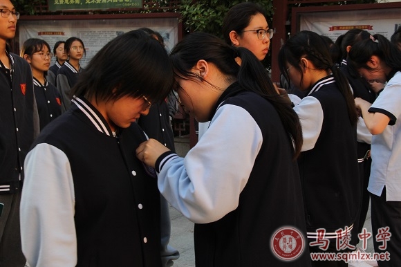 老团员为新团员佩戴团徽。每位团员从佩戴团徽的这一刻起,就明确了责任,将在新时代、新征程上不断奋进。