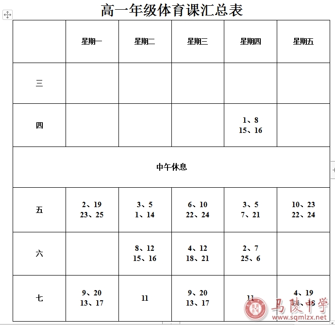 高一体育课汇总表