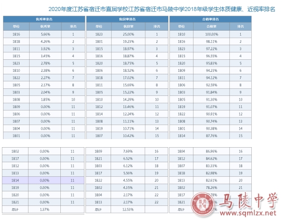 18888552018级学生体质健康、近视率排名