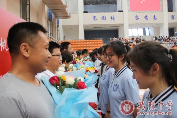 学生代表向老师们献上代表感恩的鲜花,老师们千言万语汇成一句临别的祝福。