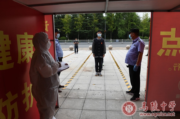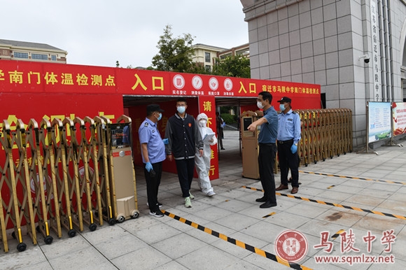 学生全程佩戴口罩,进入测温通道,前后间隔1米,有序排队,保安进行测温。低于37.3℃的学生方可进入校园。
