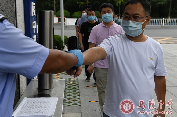 教师由学校大门进入校园,戴好口罩,前后间距要大于1米,保安逐一进行测温,驾车者停车开窗测温。